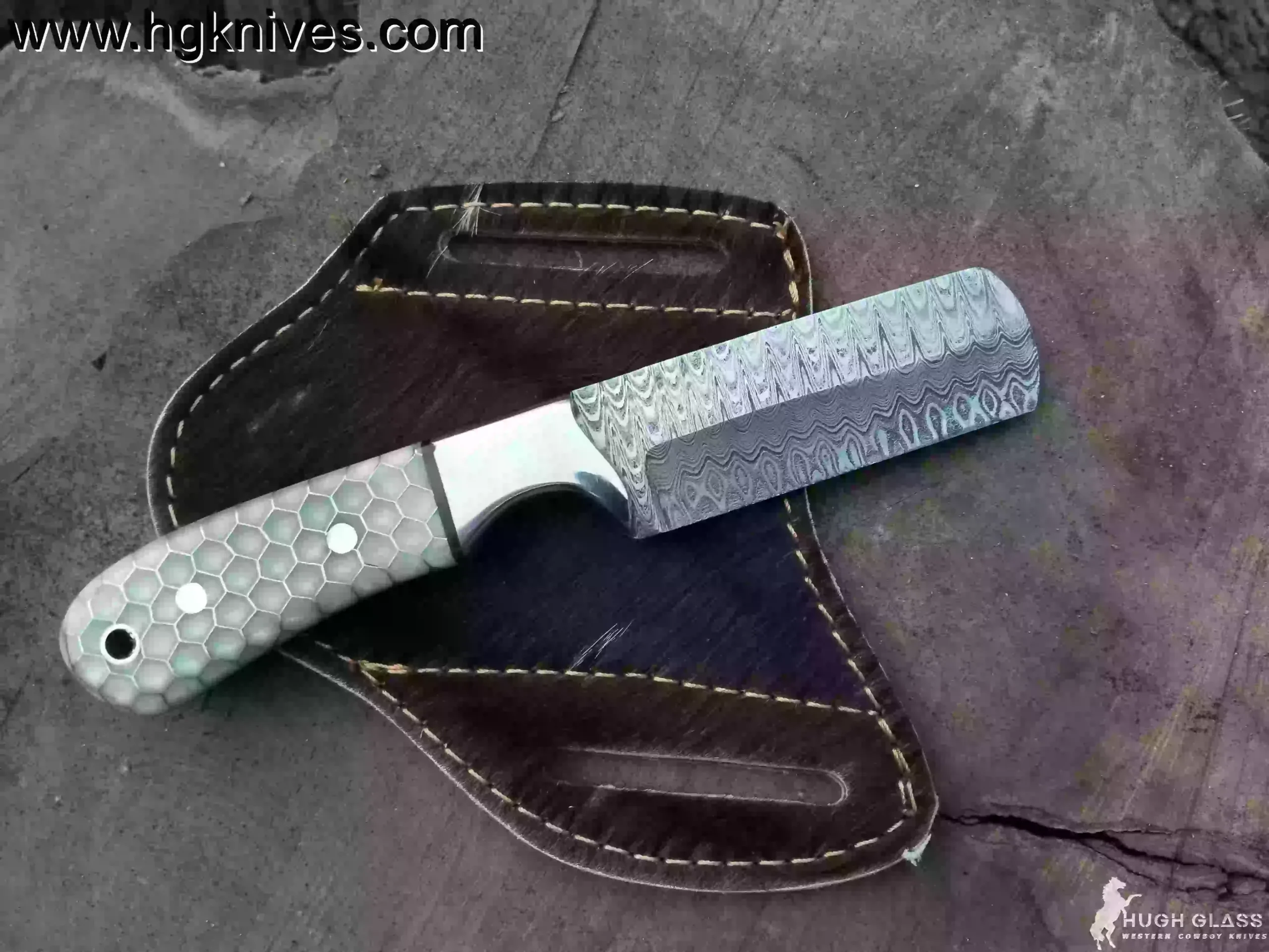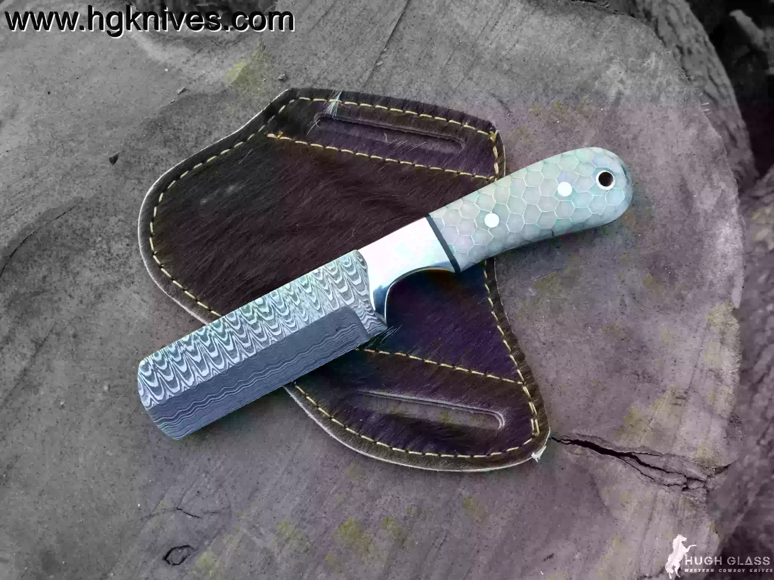 Our custom knife isn’t just another blade – it’s a masterpiece of metallurgy and design. Hand-forged by skilled artisans at HG Knives, each knife features stunning Damascus steel patterns that make every piece unique. Whether you’re working on the ranch, camping in the wilderness, or adding to your collection, this cowboy knife delivers unmatched performance and durability.